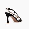 The Bracen Mid Heel in black features sparkling rhinestones, offering elegant style and comfortable height perfect for weddings and special events.