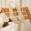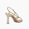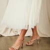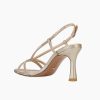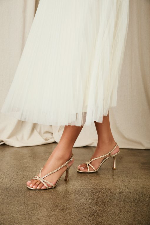 The Bracen Mid Heel in gold features sparkling rhinestones, offering elegant style and comfortable height perfect for weddings and special events.