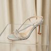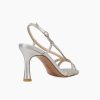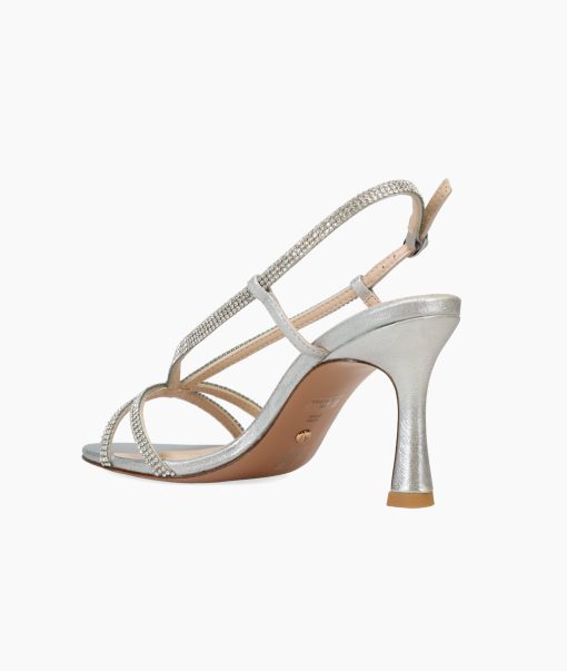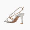 The Bracen Mid Heel in silver features sparkling rhinestones, offering elegant style and comfortable height perfect for weddings and special events.