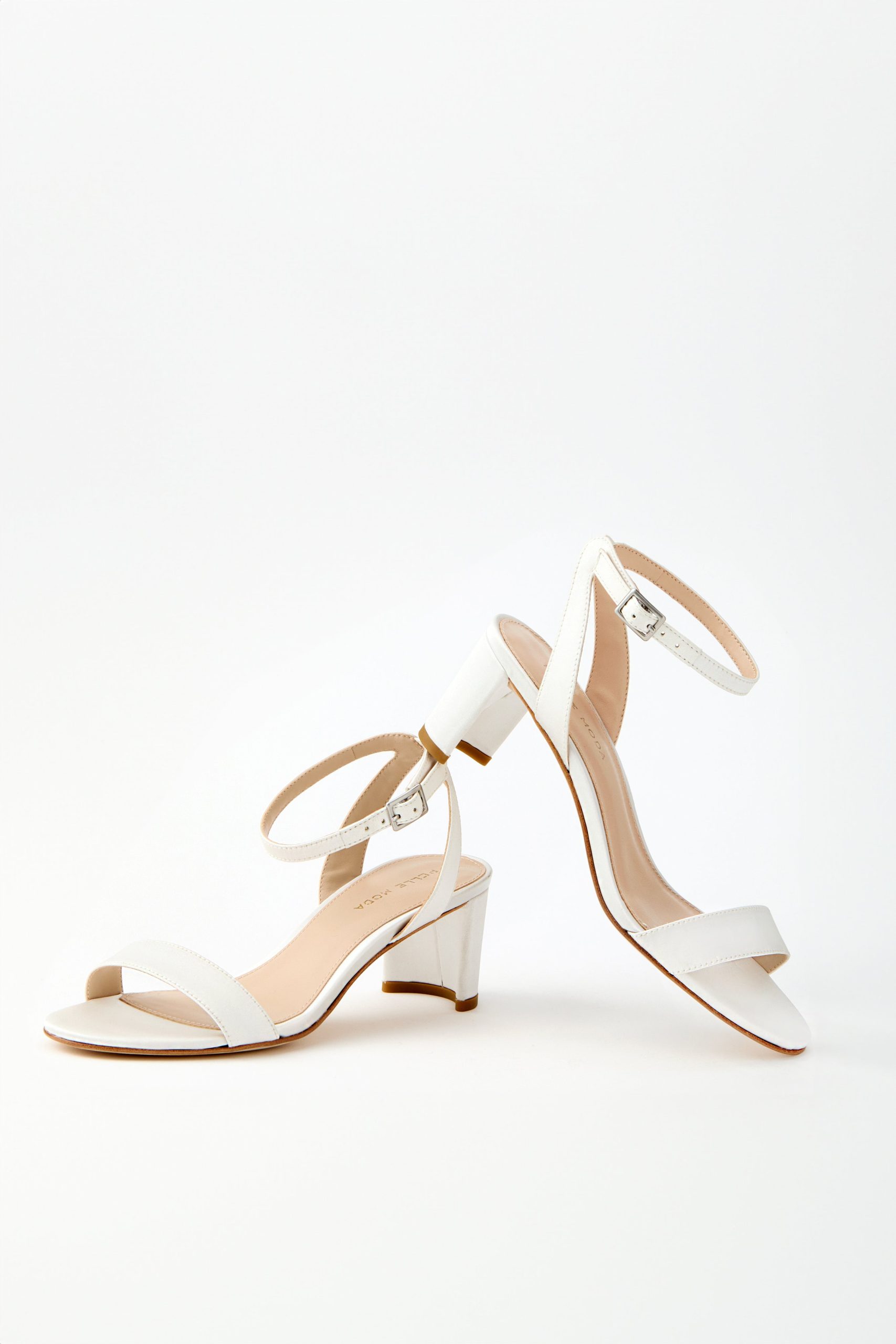 A best-selling classic in white satin. A wedding shoe with a comfortable low block heel and elegant satin finish. Perfect for brides seeking style and all-day comfort.