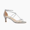 The Ura Low Heel in Silver features delicate straps and a low kitten heel, delivering a barely-there look with lasting comfort and refined style.