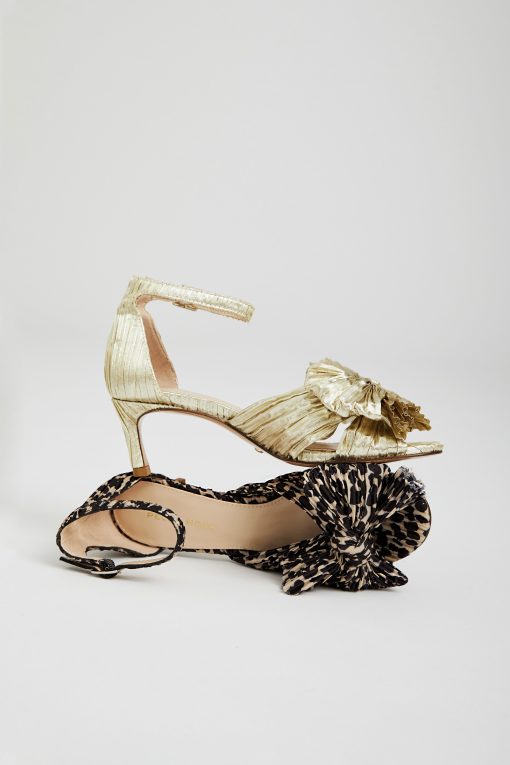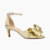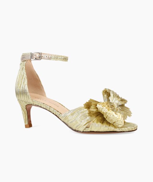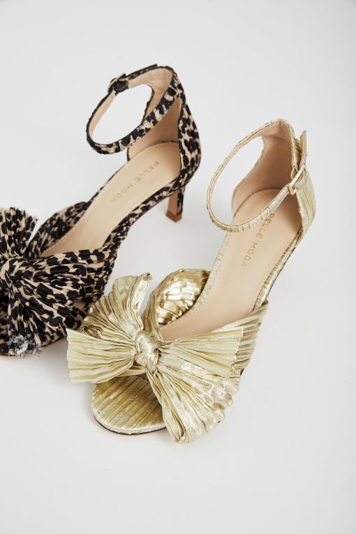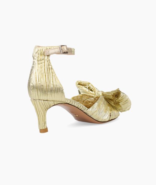 Pelle Moda Women’s Shoes Utika Low Heel – Gold | Light Gold Pleated Fabric